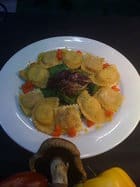 Arriving at the Show around 11 a.m. sans breakfast, I began sampling at the Ghirardelli booth with a chocolate chip cookie. Unsurprisingly, the cookie was delicious—moist yet crisp with a balance of flavors that really allowed the chocolate to shine. (In retrospect, possibly not the most nutritious way to jumpstart the day, but tasty nonetheless.) I immediately moved on to Joseph’s Pasta Company where I tested fried cheese ravioli filled with a melted yellow cheese (kind of a Cheese Whiz or Velveeta texture, but more sophisticated taste), and non-fried ravioli filled with braised beef, which was unexpected but flavorful.