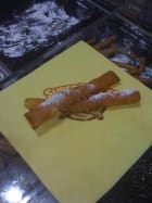 My last day at the Show, so I had to start by revisiting a couple of my favorite booths. I returned to Little Lady Foods to try a different flavor of pizza, and was not disappointed with a buffalo chicken pizza that had just the right amount of sweetness and spice. Back at Calavo, I sampled the avocado hummus, but must admit I like their guacamole better. Though tasty, the avocado hummus just couldn’t compare to the zest of guacamole or the garlic essence of basic hummus. To cleanse my palate, I grabbed a bag of fresh, crisp grapes from HMC Farms, and moved on to Crepini Café where I sampled a portabella mushroom crepini. Though I am not an expert in savory crepes (when I spent time in Paris, I was addicted to banana and chocolate crepes), I was impressed with how the slight sweetness of the crepe balanced the rich, earthy flavors of the mushrooms. Of course the day would not be complete without Tyson Chicken Twists and fries from ConAgra Foods and Cavendish Farms, and then back to J&J Snack Foods for more funnel cake fries and to Dreyer’s/Edy’s to try the dulce de lece ice cream.