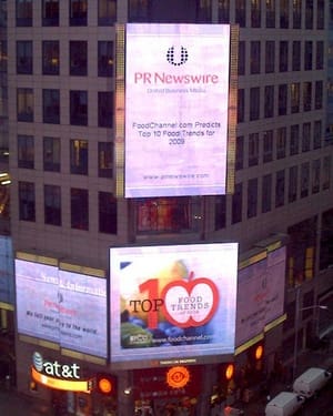 The Food Channel’s Top Ten Food Trends hit Times Square and Las Vegas – see the images of our display on these outdoor venues here. These are actual photos of when our Trends report was on the big screen. Click Top Trends to see the complete story.