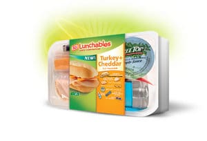 The new line of Lunchables, priced at $3.49 in retail and grocery stores, boasts six new varieties: Turkey + Cheddar Sub Sandwich, Ham + American Sub Sandwich, Turkey + Cheddar Cracker Combos, Ham + American Cracker Combos, Deep Dish Cheese Pizza and Deep Dish Pepperoni Pizza.