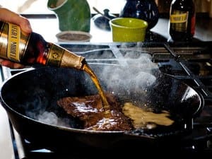 Pan sauces typically require wine to lift up the browned bits from pan seared meats and vegetables. For Cinco de Mayo, sauté a skirt steak in a heavily oiled pan until the meat is cooked through (about two minutes on each side). Maintaining high heat, add about 3 oz of a dark beer, like Negra Modelo, and cook until the beer thickens into a sauce.