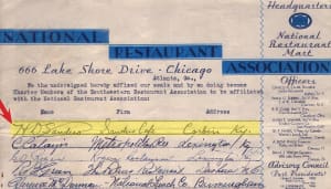 Found was a document from 1935 that chronicles how 30+ restaurateurs became charter members of the Southeastern Restaurant Association and affiliated with the NRA. The first signature on the agreement was from a gentleman named H.D. Sanders of Sander’s Café in Corbin, Ky.