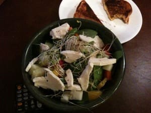 It was everything I wanted it to be; perfectly satisfying. I also tossed up a salad and added some fresh mozzarella. I love cheese. I don’t know how vegans do it. I love dairy products too much to not eat them. I see more grilled cheeses in my future. Yummm.