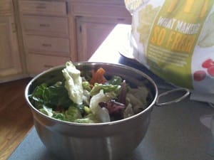 I started today off with the normal bowl of oatmeal, sans banana, and my latté. The hunger pangs for lunch kick in at about 11:30 a.m. What will I eat today? I absolutely love the McDonald’s Southwest Salad, so that’s what I’ll eat.