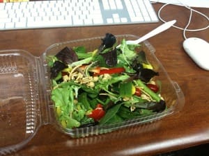 This was also another encounter with tofu. I’m curious to cook with it, I guess in stir-fry or something. Once you get over the texture, it’s pretty tasty. I mean, it just takes on whatever flavor of sauce you’re using.