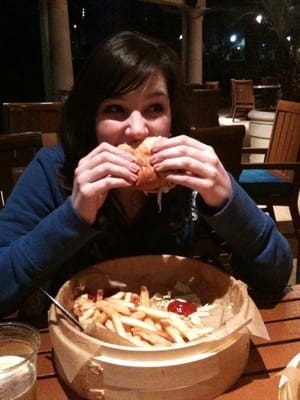 The presentation of diced of fruit was beautiful. Make sure you check the picture. And then the grouper arrived. I think I saw my editor drool a little bit over MY sandwich, even though she ordered a bacon cheeseburger to spite me.