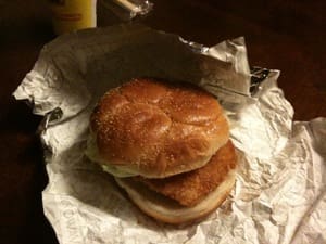 Everything about that sandwich was impressive, minus the huge bun. I removed the top bun and enjoyed it. The fish was tender and hot, the crust was crunchy and not soggy and the sauce was even tasty. If you haven’t tried one, do it. And thank you Wendy’s ad agency for making that fish look amazing.
