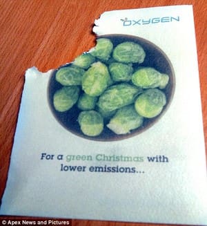 Well, Steve Lodge has created an eco-friendly greeting card you can make a meal out of. It’s made from potato starch, signed in edible ink with an image of some jolly Brussels sprouts on the front.