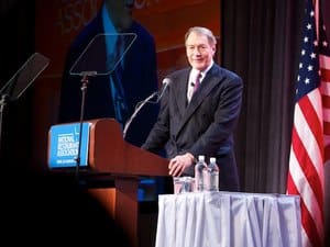 Headed for the main ballroom for the keynote speech, with Charlie Rose. Watched as he interspersed video with commentary, and as he surprised the crowd by bringing Chef/Dr. Rick Bayless out to be interviewed. See my story about the speech for more details.