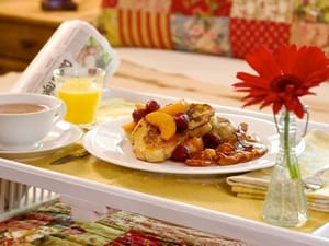 One key to making the day special for her: start the pampering early. Get up before she does and fix her breakfast in bed. Our recipe for French Toast with Peaches and Raspberries will start Mom’s day off right. (And, yes, we know that French Toast wasn’t really invented in France, but rather by an American immigrant named “French.”)