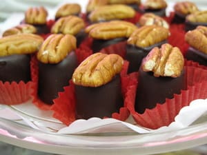 Proprietors Don and Pam Hurt began perfecting their bourbon confections in 1967 when Jim Beam proposed that they use his brand of bourbon exclusively in their candies. To create their Old Kentucky bourbon chocolates, the candy makers blend 100-proof Jim Beam bourbon with a fondant center and chopped pecans, then form the candies and dip them in chocolate. They also make bourbon cherries, which are made by aging cherries in 100-proof Jim Beam for 12 months before enrobing them in chocolate.