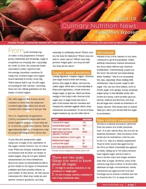 The April issue of “Culinary Nutrition News: Sweeteners Exposed,” presented by the American Culinary Federation Chef & Child Foundation (CCF) and Clemson University, answers these questions and more.
