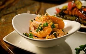The Salt & Pepper Shrimp are whole shell-on shrimp that have been flash fried until crispy, and seasoned with garlic and ginger (hint: you eat them whole—shell and all).