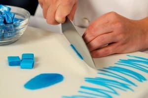 Heat blue STARBURST® candies in microwave for 3 to 5 seconds and roll out to 1/8-inch thick. |