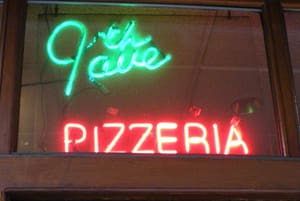 You know the kind. It is sold by the slice, and goes right from the pizza pan back into the pizza oven to be crisped and heated. It’s then slid onto a paper plate by a man wearing a stained white apron who asks, in a thick Italian accent, ‘Here, or to take?’