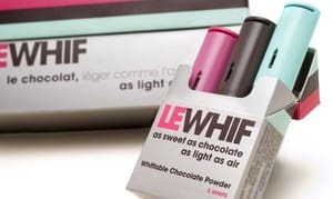 Called Le Whif, it’s an inhaler that‘s comes in four flavors: pure chocolate, mint chocolate, raspberry chocolate, and coffee chocolate. The little tube looks kind of like a lipstick case or a plastic shotgun shell. And it delivers quite a blast of chocolate.