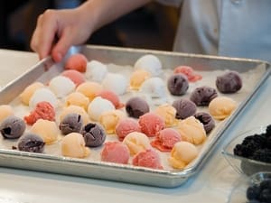 Add the additional mini scoops of sorbet all around the black cherry sorbet.