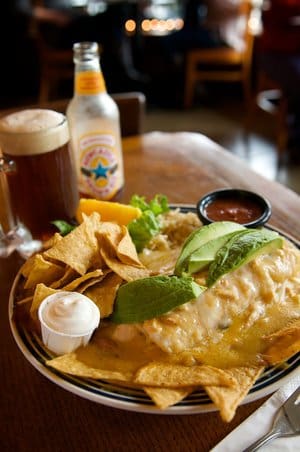 They are known for their salads, like the popular Garlic Chicken Salad with lettuce, avocado, cruncy noodles and caramelized walnuts. “We were doing caramelized 10 years ago,” points out Berkman. “We’ve always been ahead of the curve.” Or, try The Walnut that Kissed the Chicken sandwich (pictured here, with a bowl of Cockie Leeky soup) with chicken, light mayo, walnuts and celery served on squaw bread. Or, a house favorite—the Chicken Enchiladas Verde (pictured). There’s a lot to try; it’s a 24-page menu.