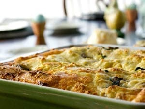 The beauty of the Mushroom-Spinach Strada is that you can make it the day before if you’d like, then pop it in the oven about an hour before you’re ready to serve it. That helps make Easter morning go a little more peacefully.