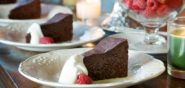 For dessert, we recommend our Fabulous Flourless Chocolate Cake topped with real whipped cream. Rich and extra chocolatey, this cake assures a happy ending to this holiday dinner.