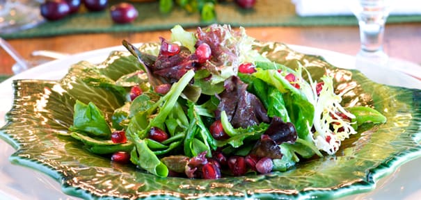 The simple addition of pomegranate seeds to our mixed green salad is that extra touch that makes this special occasion meal a little more special.