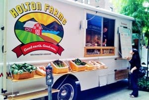 Holton Farms of Vermont cruises its ice cream truck-style vehicle into New York City on a regular schedule, offering a CSA (Community Supported Agriculture) subscription program, and delivering fresh foods to drop-off sites throughout the big city.