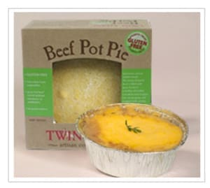 Looking for gluten-free products? Now Twin Hens has introduced a gluten-free beef pot pie that uses organic cornmeal for the topping along with rice flour and rice starch in the gravy.
