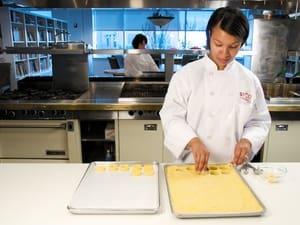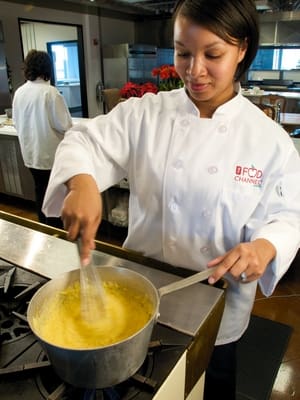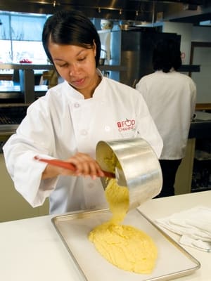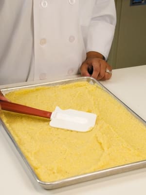 Erica, our intern from the Culinary Institute of America, shows how to make mini polenta shells, ideal for making party appetizers with your choice of fillings.