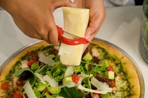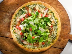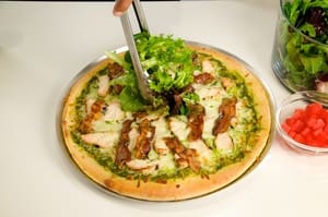 Erica, our Food Channel intern from the Culinary Institute of America, shows you how to build a bountiful “Club Chicken Pizza.” For complete ingredients and preparation instructions, see the recipe.