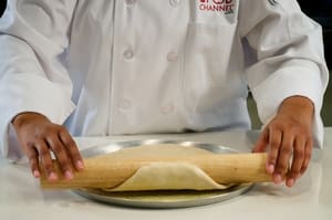 Roll the dough onto the rolling pin starting with the edge farthest away from you.