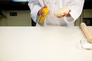Spray work surface with non-stick cooking spray.