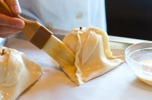 | Lightly brush each dumpling with egg glaze. | ![]() |