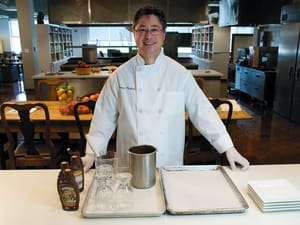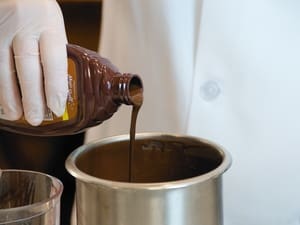 Chef Dennis has his Smucker’s® Magic Shell® and he’s ready to get started. He suggests using latex or plastic gloves to keep hands clean and prevent fingerprints on the hardened shell.