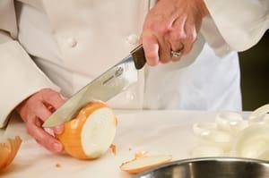 Slice Vidalia onions into rings.