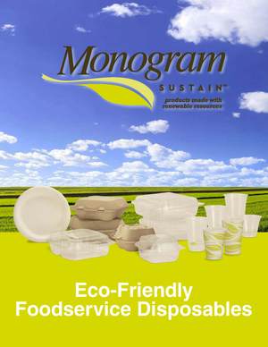 The Monogram Sustain (pdf) line was created to provide you with an environmentally friendly alternative to traditional foodservice disposables. Monogram Sustain products contain renewable resources and are also compostable, biodegradable, petroleum free and nontoxic.