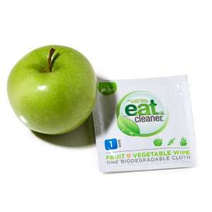 Available in a spray or biodegradable wipes, Eat Cleaner is made of plant-derived, FDA-approved ingredients and is lab-tested effective in killing up to 99.9 percent of E.coli and Salmonella.