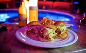 You can also grab an appetizer, like the Shrimp Cocktail or the Pulled Pork Sliders (which, by the way, are excellent) in the Lounge or at the bar. Try the Chicken Quesadilla literally filled with quality chicken.
