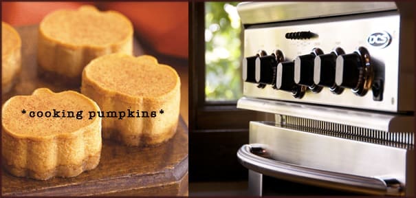To cook fresh pumpkin, heat the oven to 350º. Split the pumpkin in half and remove the seeds and stringy pulp. Place pumpkin halves, cut side down on a baking sheet and bake for about one hour or until very tender when pierced with a fork. Then spoon the soft pulp out of the shell and use it in recipes.