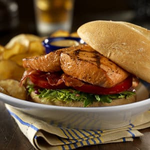 How about a crab cake burger, or a fishburger—basically fish patties mixed with breading and seasonings, then fried? Or flounder with coleslaw and rye bread for an unusual Reuben? And, of course, anything with bacon—like the seafood BLT featuring mahi-mahi, remoulade sauce, bacon and tomato. Fish is turning up between the bun more and more, as people look for a handheld alternative to beef, chicken and pork. Grilled fish as an option is gaining in popularity, too.