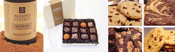 Originally conceived as a chocolate turndown treat for owners of bed and breakfasts, lodges and hotels to give to their guests, the new two-piece chocolates box offers a healthy way to indulge in something sweet. All of Allison’s Gourmet offerings are touted as free of animal ingredients, cholesterol and highly-refined sweeteners and are freshly made with fine organic ingredients.