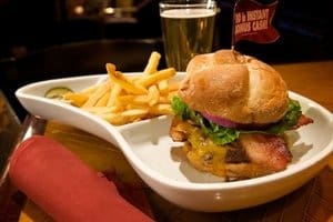 Or the Lobster Bites—a nice change from chicken nuggets, although you’ll find Golden Chicken Fingers on the menu, too. And you can’t forget the Sierra Gold Wings, their signature wings served bucket style with your choice of 20 different sauces with flavors such as Gold Fever, Double Baked Cajun, Apricot Chipotle Mustard, and Maple Hot.