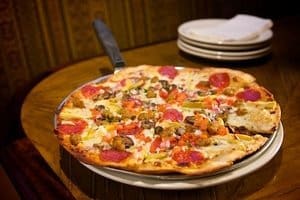 “He’s a big game hunter,” says Marcos of Sartini. “We even have a Hunter’s Special on the menu. It’s a pizza with bacon, Italian sausage, linguico, pepperoni and onions.”