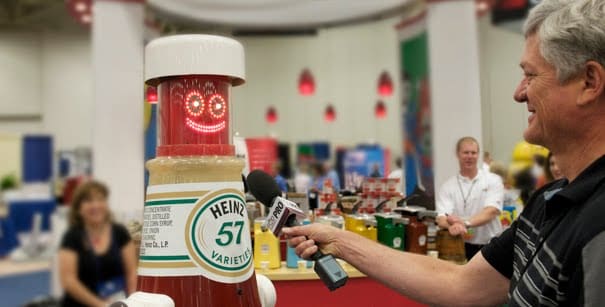We also learned about Heinz’s new ketchup with 15% less sodium and the brand new single-serve Dip & Squeeze packaging, which is just starting to hit the market. And we had the chance to “catch up” with the Heinz Ketchup robot, who appears to have kept his aspirations to be a standup comedian bottled up for years.