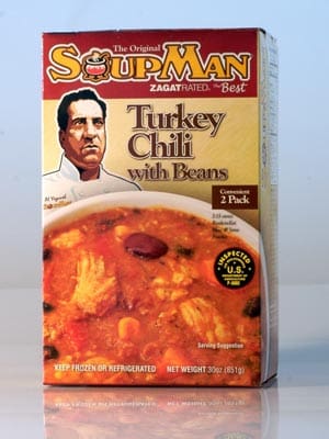 I guess our only quibble is the high sodium content, which is certainly not unusual for any prepared soup. The Turkey Chili contains 910mg per 8-ounce serving, while the Split Pea with Ham has 1,260mg per serving, more than half the recommended daily value. So for those watching their sodium intake, SoupMan soups may not be suitable.