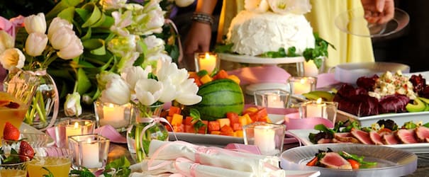 No matter what type of ceremony is planned, family and friends are involved in a variety of events before any ‘I Do’s’ are recited. One such event, the wedding shower, is no longer just for ladies and the themes go beyond traditional. Some couples host backyard fiestas or re-create a scene from “The Great Gatsby” or from a recent romantic comedy.