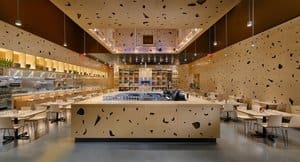 Once inside Toast, you’re surrounded by a lighter shade of brown particleboard that’s perforated by a multitude of random-shaped holes—kind of like homemade bread…lightly toasted. Everywhere. And it’s pretty cool-looking.