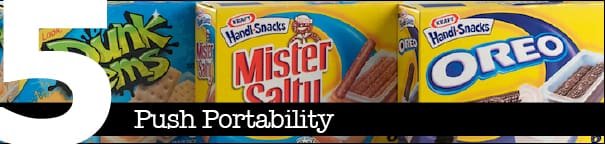 5. Push Portability: Even the cafeteria line has gone portable, as schools and universities eliminate those plastic trays. Now there’s less to wash (and, yes, fewer trays to sneak out on snow days to use as sleds), less temptation to load up that tray, and more opportunity for grabbing a stack made up of a sandwich, fruit, and drink. So whether you are buying or packing, we predict portability will be important to you when school starts again. The latest refrigerator packs now come with milk – not just soda pop – so you can offer a healthier alternative. The latest dippables, like the 90 calorie packs of Dunk ‘ems from Kraft Handi-Snacks, make it easy.