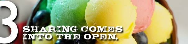 Sharing Comes into the Open. How many dessert orders include the words, ‘and bring four spoons’? Sharing the price, the caloric guilt, and the experience means that more desserts will be topped with two cherries, will be split in the kitchen, or will be built to easily pass around without sharing germs. Mini desserts are part of this; they continue to hold a great attraction in this economy. There is nothing like a $2 shot of cake, cream and ganache to send you home feeling like you’ve had a real dinner out without breaking the budget. We predict more restaurants will bring shareable portions.