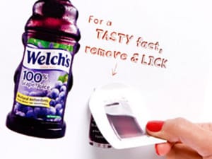 However, the ad itself apparently hit the tasteful button because 70% of those surveyed remembered seeing the ad, and most of that number actually either spread the word or bought the juice. In other words, it brought Welch’s lots of free publicity and some good sales. Will we see other lickable ads? Or is one enough for people to swallow?