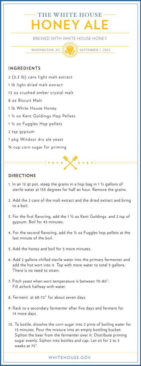 Below is the recipe for White House Honey Ale. You can find the recipe for Honey Porter here.